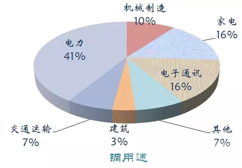銅是被廣泛應(yīng)用在電力、家電、機(jī)械、建筑、交通、電子通訊等領(lǐng)域。2014年中國(guó)銅儲(chǔ)量3000萬(wàn)噸,產(chǎn)量162萬(wàn)噸,消費(fèi)1135萬(wàn)噸。
