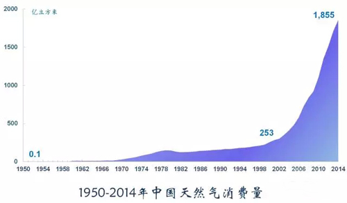 天然氣是最高效、清潔的化石能源,我國(guó)天然氣消費(fèi)從建國(guó)時(shí)期的0.1億立方米增至2014年的1855億立方米,增長(zhǎng)了1800多倍。